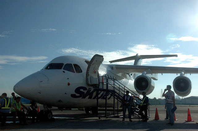 ...and after a short thirty-five minute flight, touchdown Caticlan. The country's first leisure boutique airline offering the fastest flights to your dream destinations including Boracay, Batanes, Busuanga, and Balesin with its fleet of BAe-146 Series 100 jet aircraft, SkyJet Airlines brings you there, faster. The sleek British Aerospace 80-seater aircraft is ideal for short take-off and landing in small island airports, as its whispering jets gives you a headstart on your getaway in complete comfort.