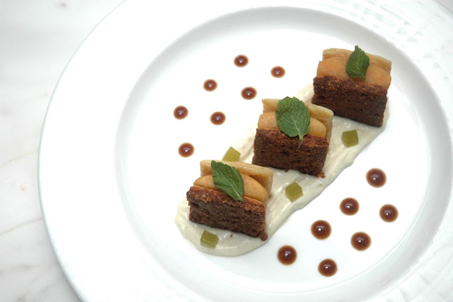 ...and the wittingly named Apple, Apple, Apple! (P 320), an indulgent dessert with a trifecta of apple components, including caramelized apples, Calvados cream, and apple gelee in cinnamon puff pastry.