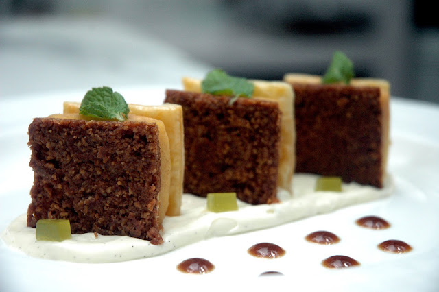 For dessert, Flame Restaurant offers a variety of indulgent Chocolate, Cheese and Fruit creations, like the signature Flourless Chocolate Cake (P 360), served with a side of homemade Pistachio ice cream...