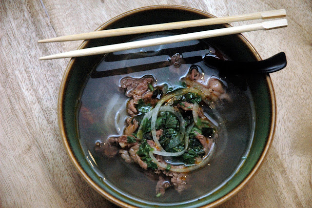 Then, it's time for some Pho. Annam Noodle Bar offers six flavorful variants of the Hanoi-style Pho, with its flat rice noodles in an intensely flavored broth boiled for twenty-four hours and garnished with fresh herbs and spring onions. The rich broth is concentrated with the bold notes of traditional Vietnamese spices, including star anise, cinnamon, cloves, ginger, and cilantro. I go for the Pho Australian Wagyu Beef Slices (P 550), with rice noodles and herbs in a dark beef broth topped with slices of Australian Wagyu beef, served medium rare.