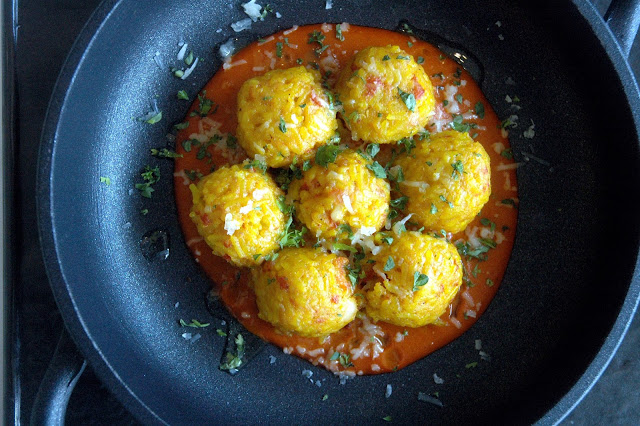 ...and the play on contrasting flavors continued with the next dish with paella reinvented, the Paella Meatballs, stuffed with Spanish chorizo laid on a rich piquillo pepper sauce. The familiar flavors of the paella come through with the creative paella meatballs, punctuated by the sharp flavors of the Spanish chorizo and the flavorful piquillo pepper sauce.