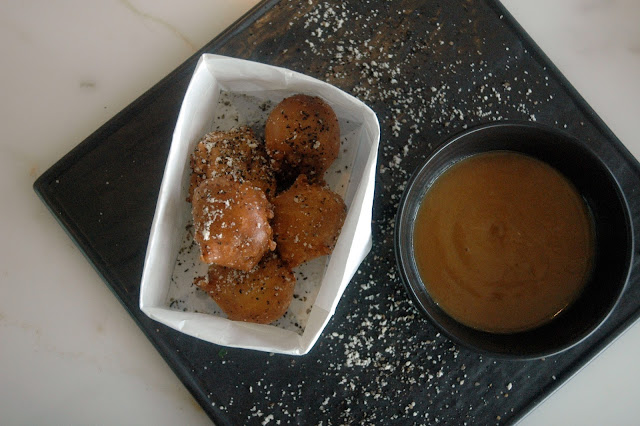 Executive Chef Luis Chikiamco continued to spin his magic in the kitchen, transforming both pulled pork and paella in a duo of whimsical dishes that surprises everyone at the special lunch preview. The unique and playfully inventive Pork Belly Doughnut, dusted with sugar-sesame and served with butterscotch-miso dip, weaves the contrasting notes of the savory and smoky pulled pork with the mild sweetness of the soft and lightly crisp doughnuts in a seamless blend, finished perfectly by the butterscotch-miso dip. The distinct Asian notes come into play for a refreshingly new dish...
