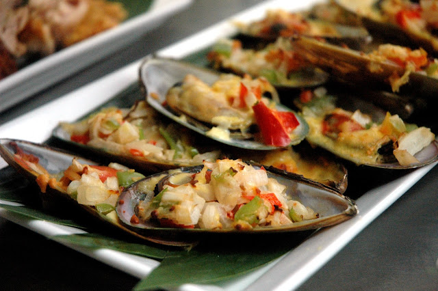 After a comforting lunch of classic local dishes (for more on Cafe Belmont, see my previous post, Comforting Local Flavors at Cafe Belmont), it was time to savor the vibrant regional flavors of Thailand, Vietnam, Indonesia, Malaysia, and Singapore at Cafe Belmont's Southeast Asian Night, starting with some fresh Baked Mussels...