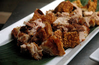 The wide variety of dishes at Cafe Belmont's Southeast Asian Night included Lemon-Grass Chicken (L) with juicy chicken delicately flavored with the floral hints of lemon grass and the popular local pork dish, crispy Lechon Kawali (R). But first, a plate of refreshing salad...