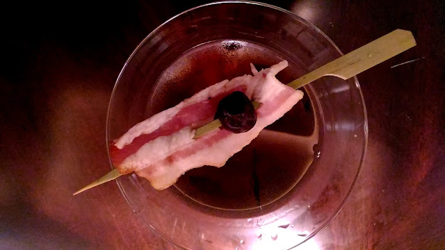 ...like the Maple and Bacon Manhattan, with bacon fat wash Bulleit bourbon, Mancino Rosso vermouth, maple syrup, and smoky bitters. Other inventive cocktails served that night included the Bloody Bull, Raging Bull Chophouse & Bar's take on the classic Bloody Mary with rosemary-infused vodka, beef stock, tomato nectar, Raging Bull BBQ sauce, and Spanish chorizo; the El Toro Loco with habanero-infused silver tequila, vermouth, lime, fresh cucumber, and agave nectar; the Bonifacio Penicillin, with Elijah Craig 12 year Old Bourbon, fresh calamansi, homemade ginger jam, Szechuan honey, and egg white; and the Boulevardier, a smooth and refreshing blend of bourbon, vermouth and bitters.