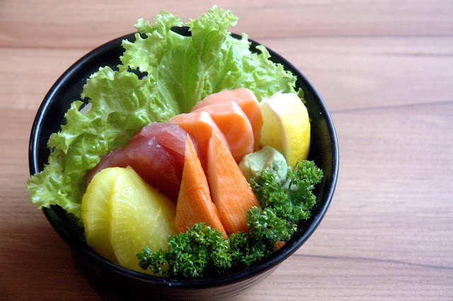 ...followed by a comforting bowl of Chirashi Moriawase (P 230) for a satisfying one-two punch. It's great to find fresh seafood in a mall's food court, and you can always enjoy the freshest sushi and sashimi at Yumi Express...