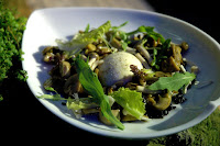 The Confit Guinea Fowl with Pear Chips and Garden Greens is a play on delicate notes, elegantly and masterfully executed. The tender Guinea fowl's mild flavors are punctuated by the sweetness of the crisp pear chips, adding texture to the tasty dish.