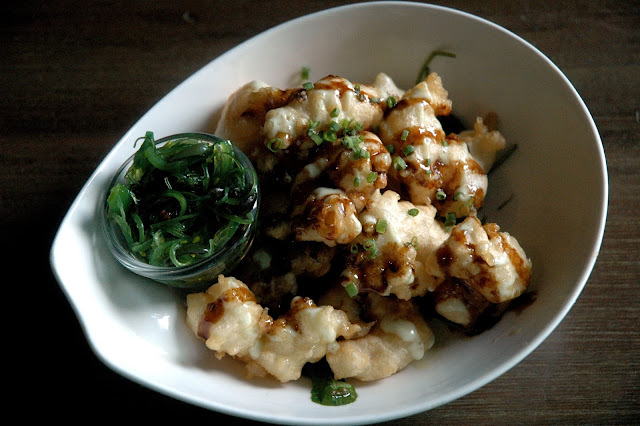 Grind Bistro's signature Popcorn Shrimp (P 395), plump shrimps in a light and crunchy tempura batter drizzled with sweet unagi sauce and sharp wasabi aioli, small bites that's big on flavor. The crisp tempura batter and the snap from the fresh shrimps deliver contrasting textures, with each bite releasing rich flavors. Another great starter from Grind Bistro, and there's more...