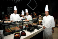 At The Cafe, diners have a variety of seating options to choose from, including cozy circular booths to private and semi-private rooms to stand-alone tables that place you right in the middle of it all, in close proximity to the different live stations. During the breakfast, lunch, and dinner buffet service hours, The Cafe's entertaining and vibrant culinary theater format is highlighted by expert chefs with their masterful performances. Diners can feast and indulge in a wide variety of flavorful options, like pasta, pizza, and Italian classics at The Italian Station; carvery, grill, teppan, griddle, satay, kebab, and yakitori at The Grill and Griddle Station; sushi, sashimi, charcuterie, cheeses, pate, salads, freshly-baked bread, terrines, and chilled seafood at The Deli; dim sum, Chinese barbecue, wok, noodles and rice dishes at The Asian Station; tempura, fried dim sum, pressure fried dishes, and fried food favorites from around the world at The Comfort and Favorites Station; and finally, soft-serve ice cream, pancakes, waffles, crepes, halo-halo, indulgent pastries, cakes and baked treats at The Pastry Station. After a tasty first course of fresh salmon and oysters on the half-shell from my friends at the The Deli Station, it's time for even more fresh seafood, it's time for Sushi and Sashimi...