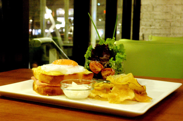 This. Brioche Croque Ma Duck (P 335), French ham on brioche loaves with bechamel and gruyere-emmenthal gratin topped with duck egg and served with house made potato chips, a personal favorite. The mild flavored French ham comes to life with the creamy bechamel and cheese combo, and the duck egg adds the finishing touches to the dish. Gently break the yolk, and allow it to slowly drape the brioche before taking a slice. The freshly baked brioche is soft and creamy, with a buttery richness. I'll have this any time and yup, this one disappeared in minutes...