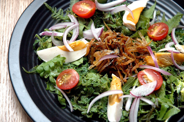 Add some fresh greens to your feast at Komedor Filipino Restaurant with the Ensaladang Paco (P 125), a medley of fresh young ferns tossed with cherry tomatoes, red onions, crispy anchovies and salted egg in a tart vinaigrette. The fresh and clean notes of the ferns are kicked up a notch by the vibrant flavors of the cherry tomatoes and the salted egg, with the bold hints of red onions and crunchy dilis adding both flavor and texture to the dish, rounded out by the tart vinaigrette.