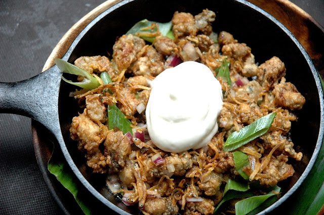 If you just can't get enough of oysters, go for the Oyster Sisig (P 290), with plump baby oysters sauteed with garlic, onions, and chili topped with crispy dulong and bagoong aioli. It's sisig with a totally new and refreshing twist, with the crisp texture and sharp notes of the dulong adding contrast to the richness of the oysters. Add this to your must-try list at Komedor Filipino Restaurant. Seriously.