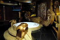 Even Han Solo would approve. And I'm pretty sure the wookie would approve too. A replica of Han Solo frozen in carbonite adorns one of the doors inside the Space Wars Suite, along with a pair of Jedi robes. The private quarters are tucked away in one of the chambers of the Space Wars Suite.
