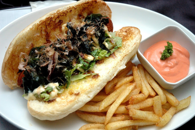 ...and uniquely Japanese influenced Japanice Hotdog drizzled with mayo and topped with bonito flakes and nori strips.