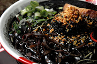 And after a few minutes, my Black King is served, fresh from the kitchen. The fragrant aroma of garlic and green onions rises from the steaming hot bowl of ramen, and adding the seaweed and tamago sets up my customized Black King for another savory encounter at Ramen Nagi.