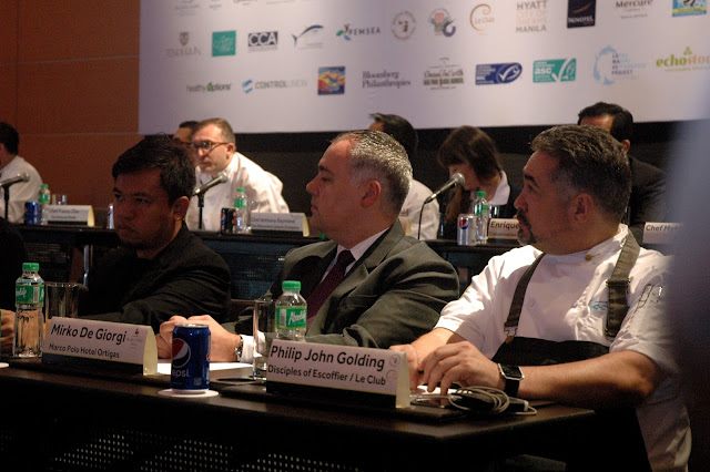 At the 2nd Sustainable Seafood Week's launch, the food industry's leading institutions and the country's very best chefs and culinary professionals, came together for a timely cause, including Mirko De Giorgi of Marco Polo Hotel Ortigas (L) and Chef Philip John Golding (R) of Disciples of Escoffier.