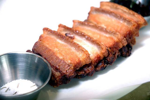 The richness of the pork belly is tempered by the rosemary salt and the sour apple onion jam for contrasting notes combining for balanced flavors. The Herb Rice Pilaf makes it a real meal. And sharing these dishes makes it even more enjoyable...