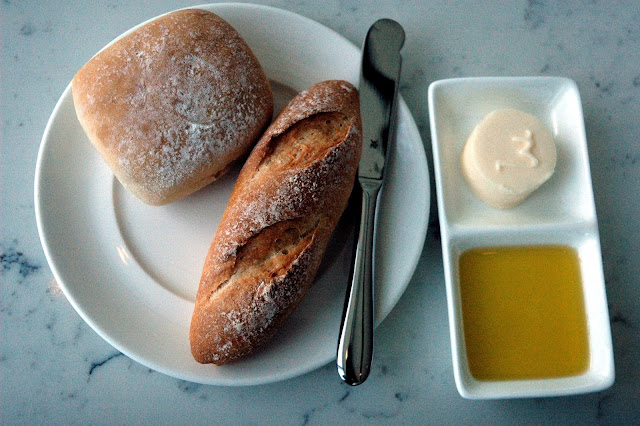 A fresh-baked Baguette and Sourdough served with French butter and olive oil kicks-off my culinary journey to Provence at Mireio...