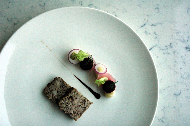 The Pork Neck and Chicken Liver Terrine with Pickled Gralic, Shallot, and Beets is another new dish featuring the traditional French terrine. The richness of the terrine is perfectly tempered by the sharpness of the pickled vegetables, preparing you for the next slice. And another. It's classic flavors like these that make Mireio that comforting little spot of Provence right here in the metro.