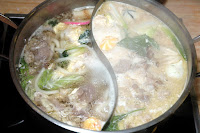 ...and the Japanese-Style Fried Chicken, tender and juicy chicken capped by a crisp outer layer richly seasoned for intense notes. The tasty side dishes alone add to the overall value of Shabu-Shabu Ichiban's hot pot sets. Then, it's time to choose your Soup Base for the signature hot pot. At Shabu-Shabu Ichiban, diners can choose from 24 flavorful soup stocks for that perfect hot pot, including Konbu (seaweed), Ginger, Vegetable, Plum Vegetable, Tomato, Tonkotsu, Tonkotsu Soy, Shoyu, Soy Milk, Soy Milk Sesame, Spicy Soy Milk, Soybean with Healthy Spice, Spicy Miso, Spicy Miso Butter, Spicy Miso Kimchi, Taiwan, Miso Taiwan, Spicy Healthy Spice, Kimchi, Tantan, Spicy Szechuan, Red Hot Szechuan, Curry, and Basil Cream. The pots include a divider in the middle, so you can opt for two different soup stocks. The popular Tonkotsu pork broth and the tasty Konbu seaweed soup base were my choices for the hot pot.
