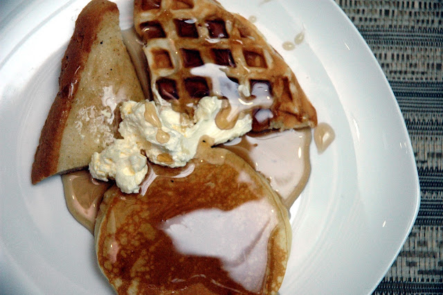 French Toast, pancakes, and waffles, if you can't decide, make it easy on yourself and have all three.