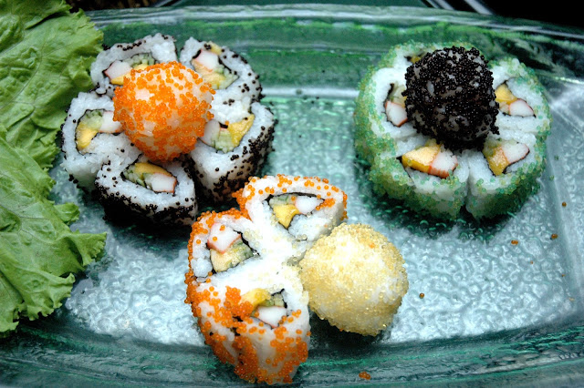 The Aburi Sushi, another of Yanagi Japanese Cuisine's specialties, is served. The colorful lightly torched assorted seafood draped in the rich and creamy aburi sauce is impressive, feeding first the eyes before the palate.