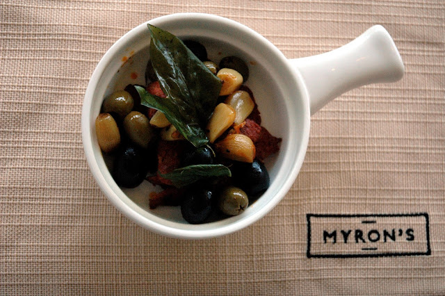 Indulge in savory bites before the mains with Myron's Txistorra Chorizo with Black Olives (P 325), a tasty starter with with the rich notes of Spanish pork sausages from the Basque country perfectly tempered by the equally bold hints of the olives for balanced flavors. Go ahead and have a second round of the Marianito or a glass of Myron's house wine...