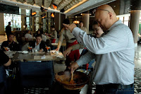 Myron's brings back the classic dining experience, with its Caesar's Salad prepared by your tableside (L). The slow and tedious preparation adds an elegant nostalgic touch to dining at Myron's, as Ramon Eugenio takes over to complete the sumptuous salad course (R).
