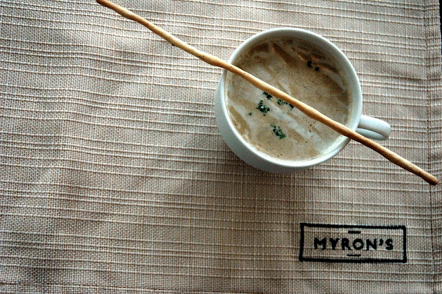The creamy and comforting flavors of earthy mushrooms come through with Myron's Cappuccino of Mushroom (P 250), capped with a light frothy head of richness. Each sip coats your palate with its fresh flavors, intensified with each succeeding sip.