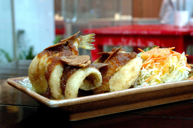 The Yaku Platter (P 205), with an assortment of Yaku's grilled yakitori including Negima (chicken with onion leeks), Okura (grilled okra), Uzura (grilled quail eggs), Asparamaki (grilled asparagus wrapped in bacon), Butabara (grilled pork belly), and Gindara (grilled cod fish topped with ponzu oroshi). You can also order ala carte and choose from 18 authentic yakitori favorites. A cold Kirin and some yakitori, just perfect.