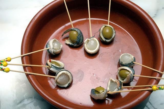 Green olives and pickled shallots wrapped in anchovies added even more festive flavors...