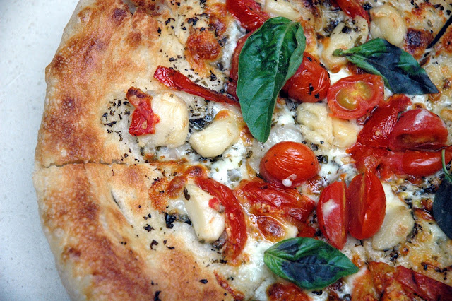 Stella's cool Pizza Bundle includes the Stella Margherita and the Straight Up Pepperoni from the wood-fired oven. The Stella Margherita offers fresh and clean flavors with a crisp crust topped with roasted garlic, tomatoes, garlic confit, and fresh Thai basil. The nutty notes of the garlic, the tart flavors of the tomatoes, and the mild peppery sweetness of the basil come together in a seamless blend, rounded out by the distinct smoky hints from the wood-fired oven.