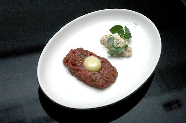 Executive Chef James Williams starts our dinner with a savory Amuse-bouche of Beef Tartar topped with quail egg, a light starter with fresh and bold notes. It's the kind of flavor many loyal diners of The Fireplace have come to love through the years, recreated at The Glasshouse.