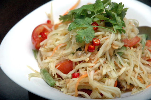 Your culinary journey of Asian flavors continue with a pair of refreshing salads from Thailand with the sweet, spicy and tart Thai Papaya Salad...
