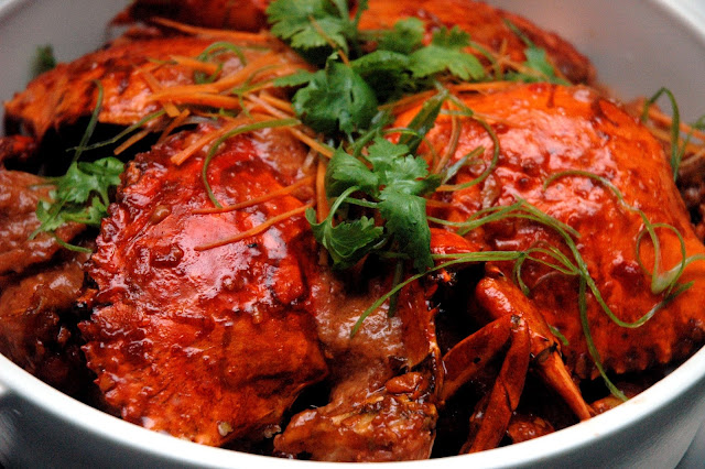 ...and Chili Crabs, succulent crabs draped in a rich chili and garlic sauce.
