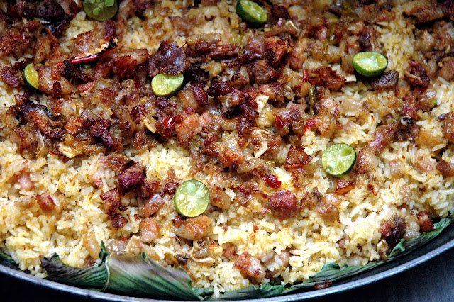 ...go for a heaping mound of Sisig Paella for a double dose of pork love. The light crispness of the pork mask adds both texture and flavor to the rice, and it's a full meal in itself. Simply squeeze some calamansi to temper the richness of the pork for balanced flavors.