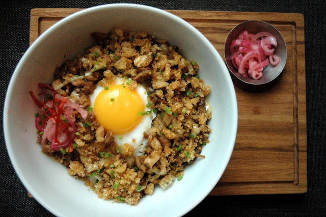 Here's some pork love in a bowl. Manila Life Cafe's Sisig Rice (P 350) with crunchy pork sisig, green chili, fried egg and calamansi on steamed white rice is a full meal in itself, guaranteed to satisfy any serious craving or appetite. The crisp texture and rich flavors are perfectly tempered by the egg, tart pickled red onions and green chili for complex yet balanced notes.