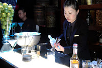...for the paper-wrapped cocktail, Blood and Sand. The bold notes of the smoky single malt whisky is the base of the cocktail, with the flavors from the infused Vermouth Rosso, orange juice and Cherry Heering adding distinct layers in a seamless blend. Like all her cocktails, from the ingredients and flavorful blends to the final presentation, each is a reflection of Mari Kamata's attention to detail capped by the intricate paper-wrapped glass.