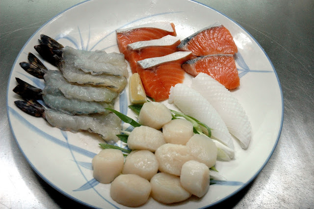 ...and the Assorted Seafood Platter including US Scallops, Squid, Tiger Shrimps, and Salmon. You can also opt for Mackerel, Tuna and Red Snapper for even more tasty options.