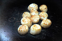 The salmon is then topped with spring onions and set aside for the next seafood dish...