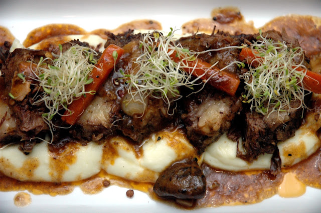 Laid on creamy mashed potatoes with mushrooms and carrots, the flavors are both rustic and real that's downright comforting.