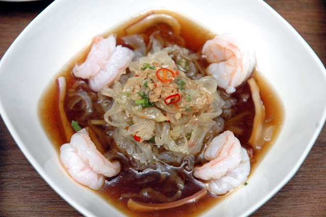 Paradise Dynasty's Chilled Jellyfish and Seafood in Vinaigrette (P 328) offers fresh and clean flavors punctuated by the sharpness of a tart vinaigrette. The plump prawns and tender jellyfish deliver fresh and briny hints kicked up by the vinaigrette for another refreshing dish.