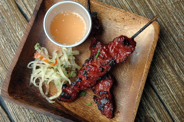 The Bulaklak Skewers (P 95/2 Sticks) takes the traditional chicharon bulaklak and gives it a barbecue makeover for another tasty side pairing perfectly with a cold beer. The soft and tender ruffled fat of the pork innards release a savory richness that line your palate followed by the light crispness of the charred outer layer for both contrast and flavor. The spicy vinegar dip and homemade atchara cleanses the palate and tempers the richness, and you're good to go for another flavorful bite.