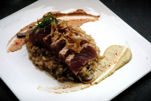 The creamy risotto delivers deep, nutty notes from the mushrooms and uni, pairing perfectly with the clean, briny flavors of the tuna capped by the rich togarashi spice blend and smoky dried bonito flakes. The dish is yet another fusion of east and west, masterfully executed at Nikkei.