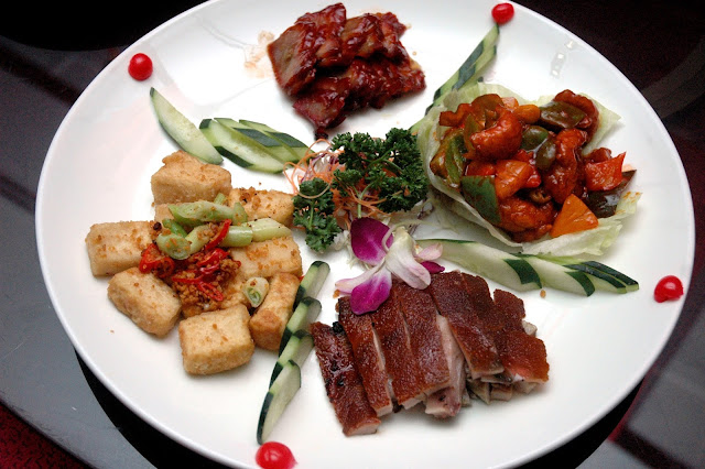 Xin Tian Di's impressive feast for the Chinese New Year includes eight sumptuous courses, starting with The Divine Combination Platter with Sweet & Sour Pork, Pork Asado, Salt & Pepper Tofu, and Suckling Pig. Elegantly plated, each component of The Divine Combination Platter delivered tasty bites with a savory richness, and that's just for starters...