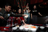 With all the condiments and ingredients added to the salad, diners then prepared for the ceremonial toss with cheers and chants of well wishes for the new year. With the traditional Yu Sheng ritual, the promise of a prosperous new year is celebrated by the way the salad is tossed, high and messy. It's all part of the fun, and after the toss, you can help yourself to a generous serving of fresh vegetables and seafood to start your feast at Xin Tian Di.