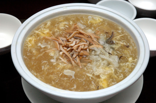 The Eight Treasure Fish Maw Shredded Sea Abalone Soup combines succulent seafood with a thick broth warming both the palate and body with its rich flavors. The flavors are subtle and delicate, with the briny sweetness of the fresh seafood lingering long after the first sip.