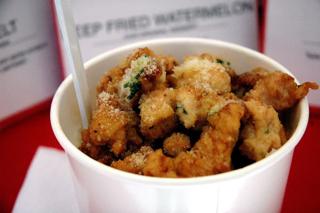 This year's edition of The Gourmand Market includes even more tasty surprises. Like Deep-Fried Watermelon. Your read that right. Juicy watermelons coated in dough and deep-fried until golden brown topped with vanilla cream, it's one of those unique yet tasty finds at The Gourmand Market. Just head on over to Maryland ChickAn, and you'll find this playfully inventive treat. Like a doughnut or even a corn dog with a sweet fresh fruit filling, this is by far one of the most unusual yet tasty sweet bites I've had, definitely different. One bite and your palate is treated to a delightful play of textural contrasts followed by the sweetness of the watermelon and capped by the vanilla cream. Just can't get better that that.