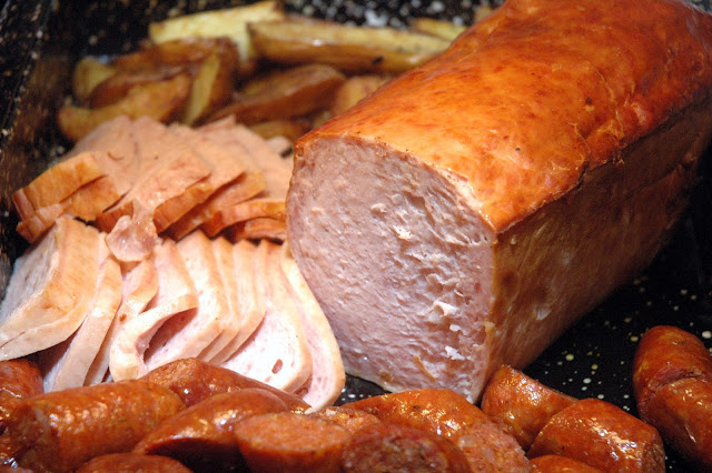 At the Carving Station, you'll find a variety of tasty options like the Swiss-German Leberkase, a type of meatloaf almost like bologna sausage made from a blend of beef, pork and bacon. The different ingredients are finely ground and baked in a loaf pan until the crust is crisp.