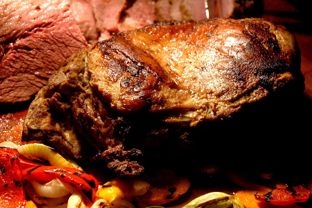 ...and the Slow-Roasted Lamb Shoulder with lemon, garlic and rosemary with its distinctive savory richness paired with roasted vegetables, baked potatoes with sour cream, and grilled corn with cheese.